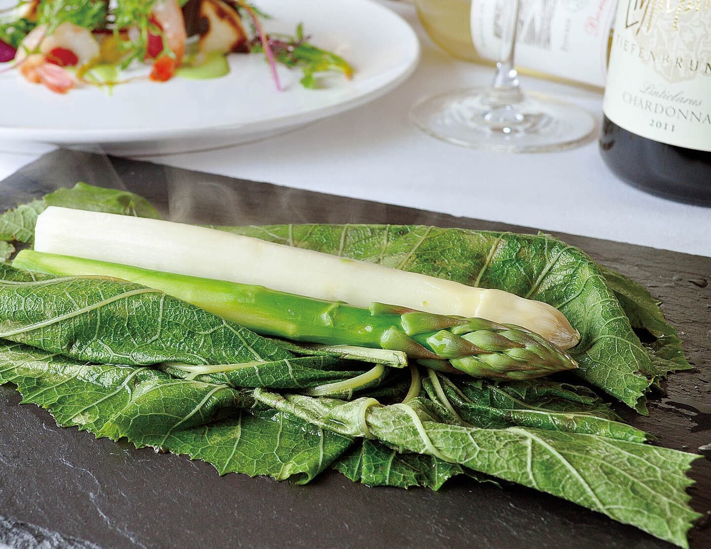 石狩産アスパラガスのポシェ(8,500円ディナーコースより)
